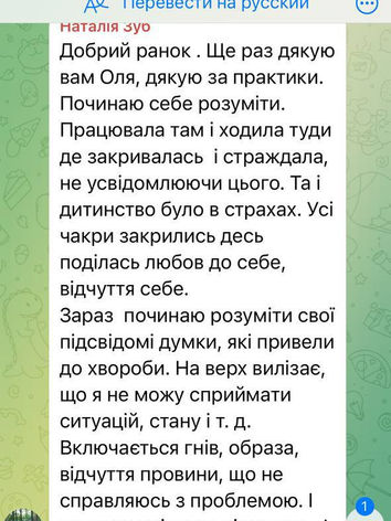 Мені дуже важко давалось все на початку, через практики Ольги я зрозуміла де і в яких місцях маю проблеми в тілі. Дякую, що допомагаєте людям і підтримуєте у будь-якому віці. Навіть коли трішки за 50+